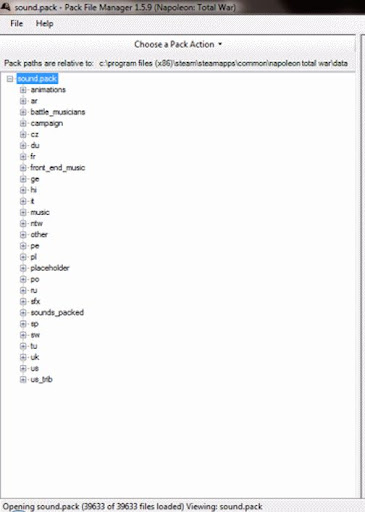 Once the napoleon total war\data folder is accessed, scroll down and find the sound.pack file. Double click this icon to select this file. Now, double-click on the sound.pack icon to open it and view its contents. It should look similar to this: