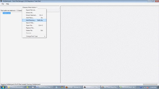 Alright, let us jump ahead and assume you’ve replaced and renamed all the music files you desired and it’s now time to put this all into a .pack file. Open a new instance of Pack File Manager and in the upper left corner of the screen, left click file and on the subsequent drop down menu, click new. A window will open and it will ask: Make packed files relative to which directory? Look at your desktop icon in the new window, and find the folder you made at the beginning: my_music_mod, and click on it, then click OK.