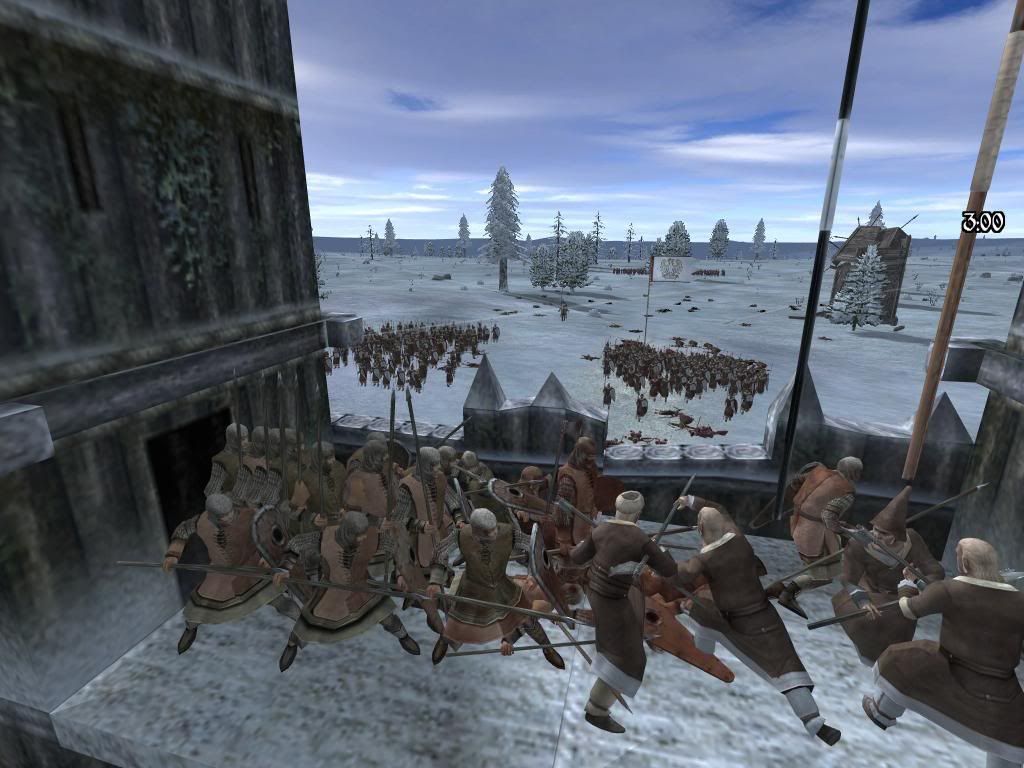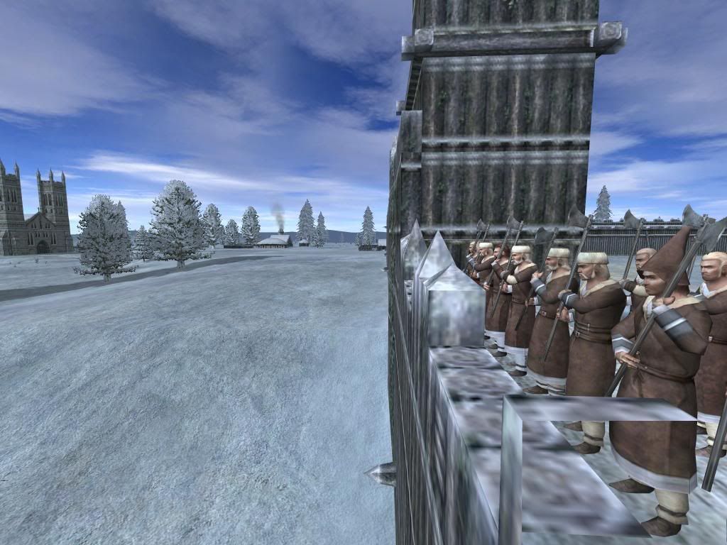 Then another set of ladders hit the walls. Mercinary spearmen and normal Polish troops climbed the ladders. The axe-men then attacked the Polish troops and a battle began between the spearmen and ordinary woodsmen.
