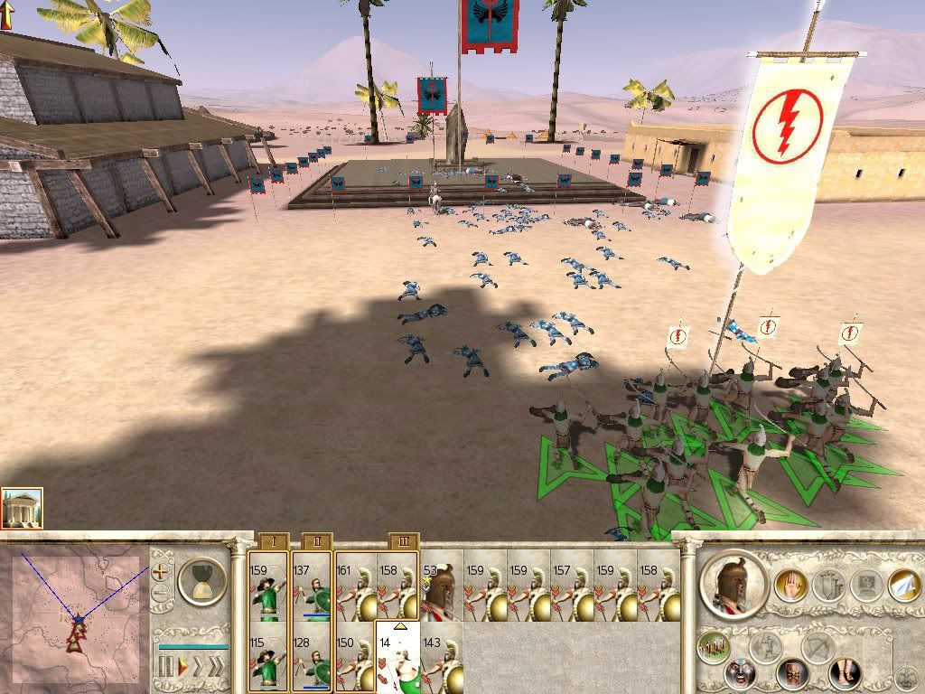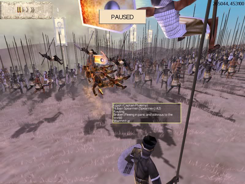 The libyan spearmen were pushed from two sides and shaked. It's really fun to watch them being squeezed and falling from the wall