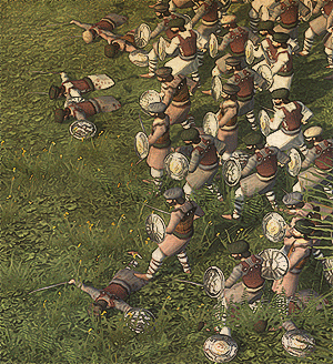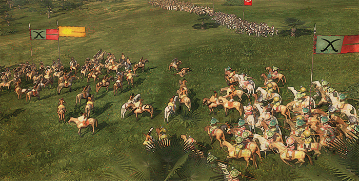 While cavalry is important, it`s role was only to support line of my infantry. I`ve deployed total number of 6 inf units. 2 of those were Ghazis - cheap cannon fodder, axe-armed religious fanatics, that would hold my right flank no matter how quick enemy would slaughter them.![]()