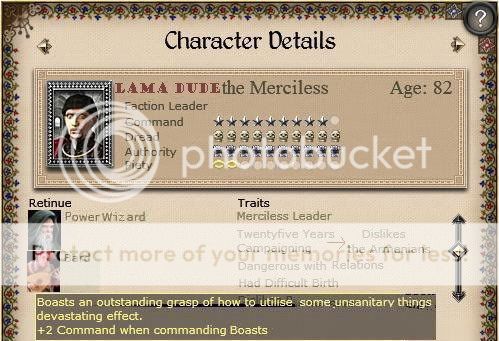 They are led by an underbred general, i can see some signs of incest, too though....keeping an eye on that one. The opposing General is sieging a fortresslike building...whatever...can't be that important, can it?