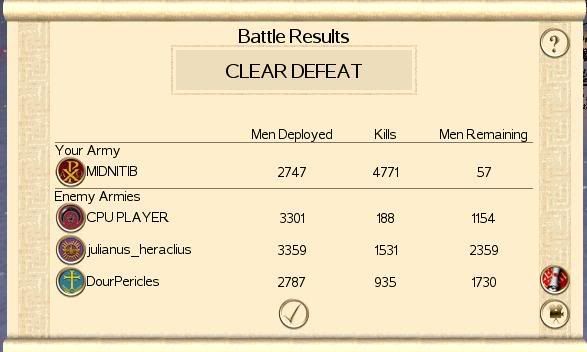 From here on in, it's ugly as the cut-off Roman ordines crumple in on themselves and fall one by one. It's a tough struggle as the discipline and courage of the legionaries and auxilia stand them in good stead but it is all in the end to no avail. Retreat is never going to happen and the wave of armoured horsemen keeps on coming without respite. Small knots of Romans stand back-to-back and fall to a man in the wine-press of battle.