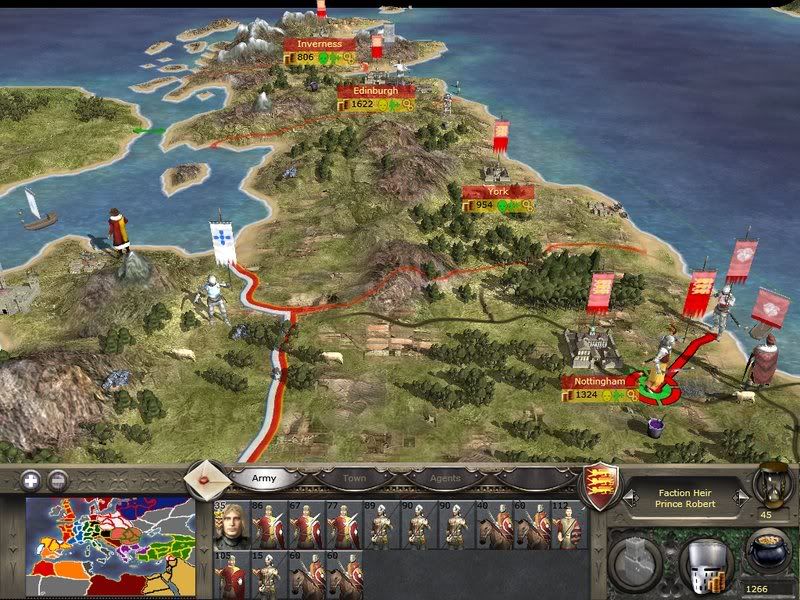 Im also hit a snag with cash flowIll win though the army of Prince Robert should be able to fend of some resistance but i have bad units compared to other countrys who are started to deploy fedual knights who i cant even make now if they cross the cahnnel im done for.