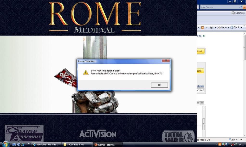 go to : RomeMedievalMOD\Data\animations\engine\ballista and see if there is Ballista_idle.CAS file or not,if yes,that means RomeMedievalMod folder is in the wrong place.