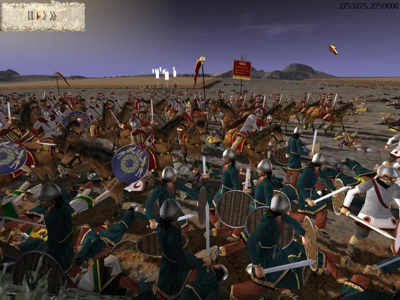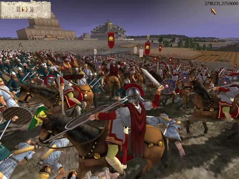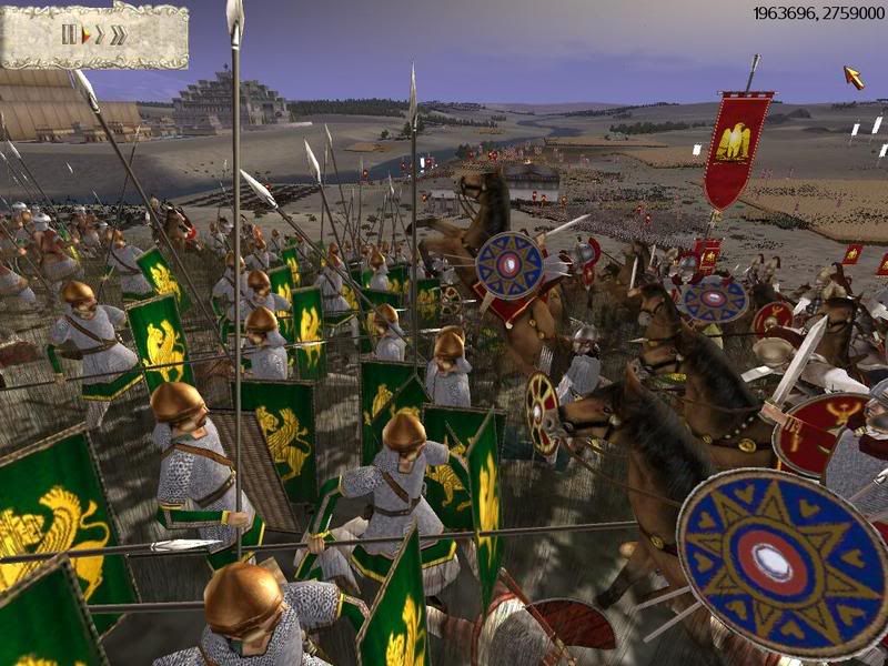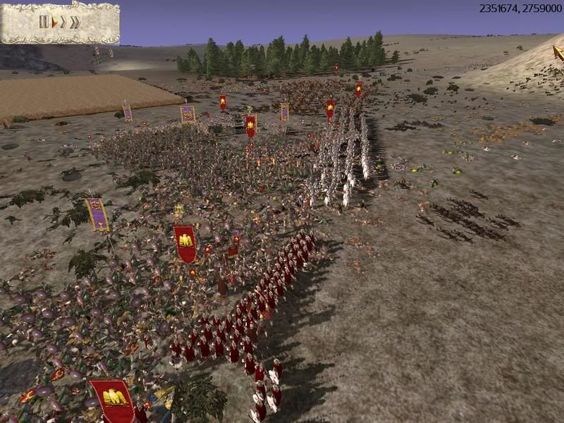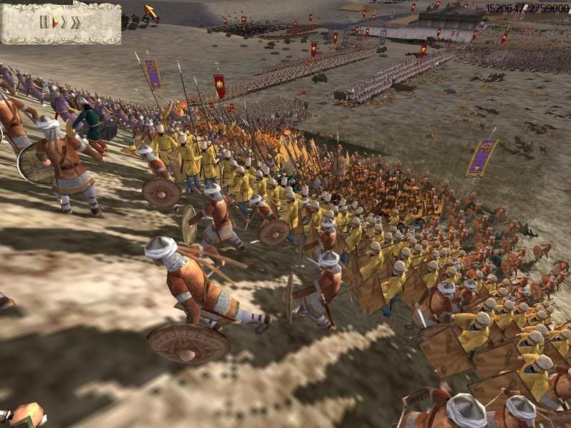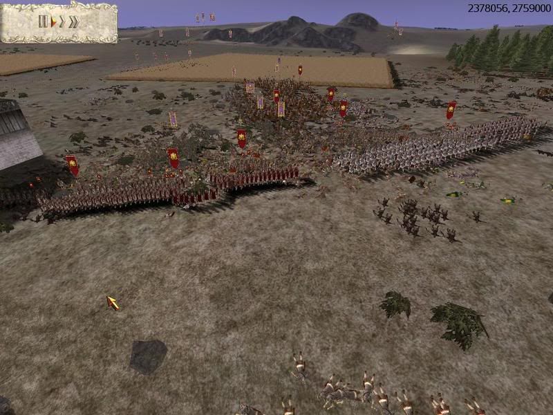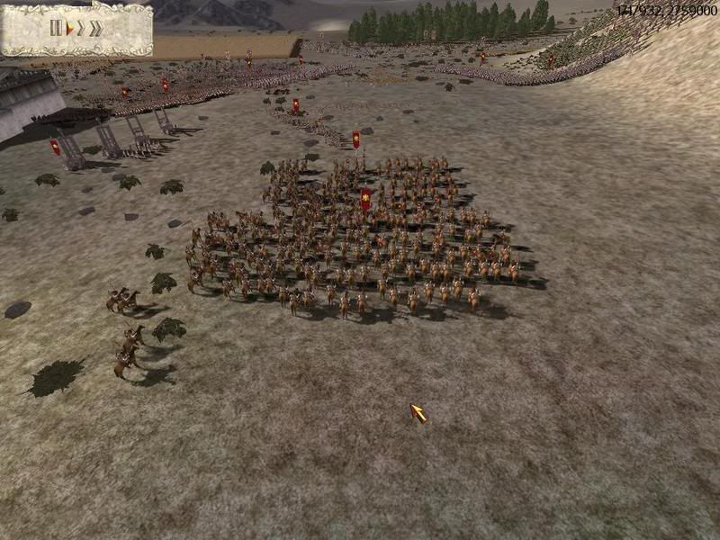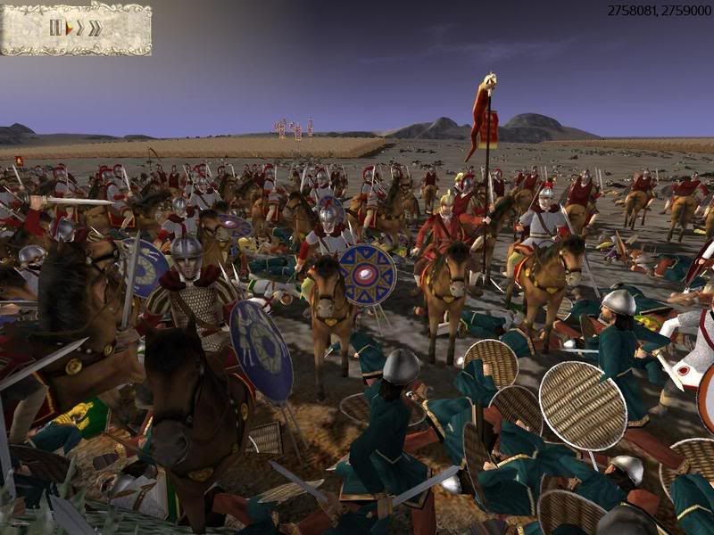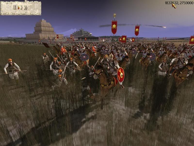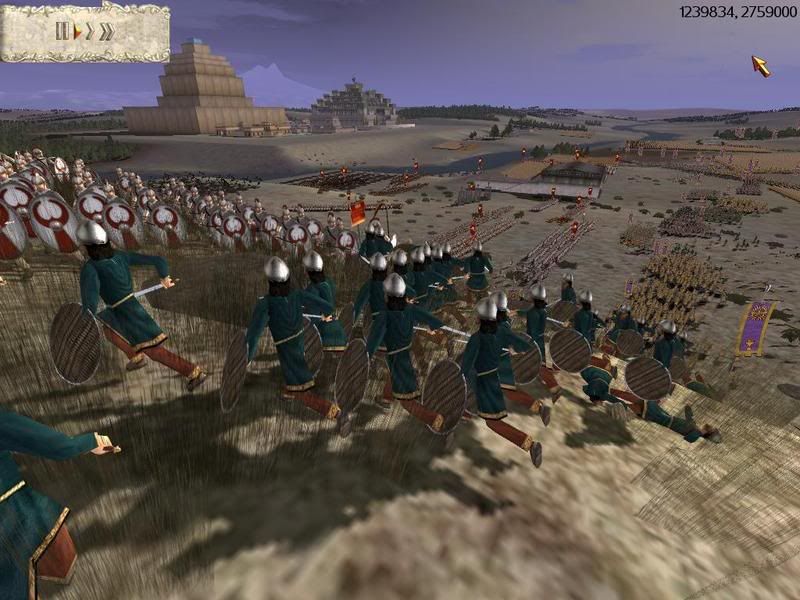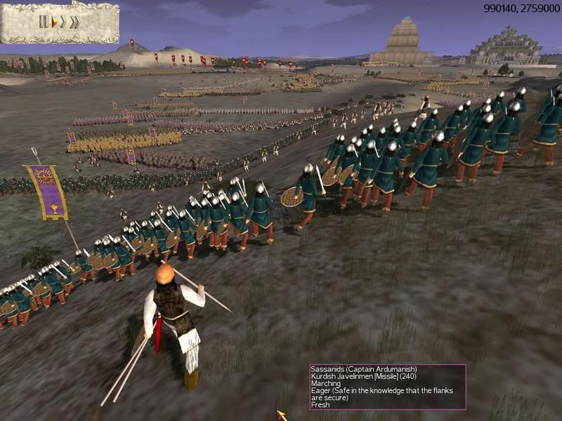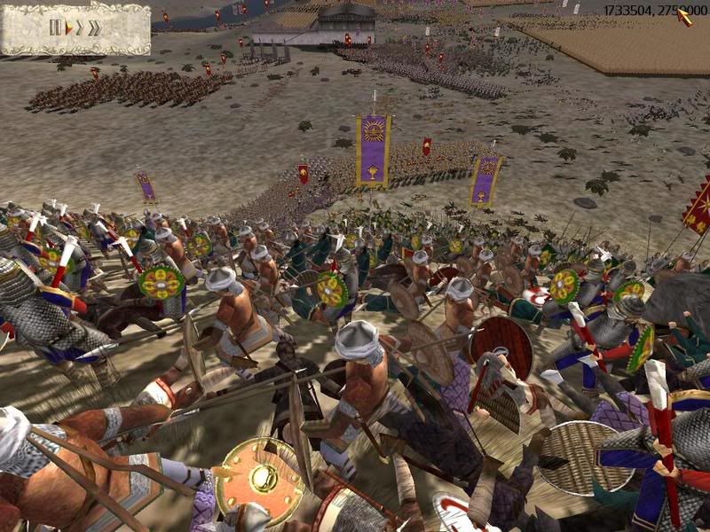 Since we did not get to play the tournament Saturday. I ran another test on my pc. I called it the prelude to Sumere. Approx 3000 for Julian and 11.000 plus for Sassanids. I cheated a little bit. I did not give the Sass any cav. Here are some screenshots.