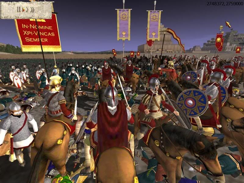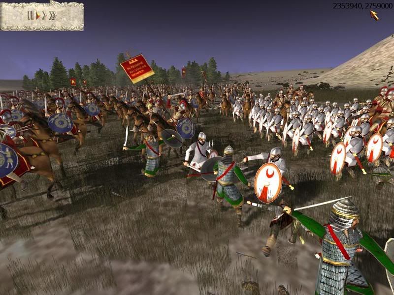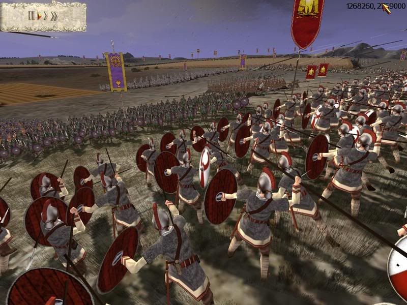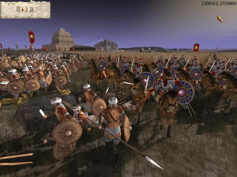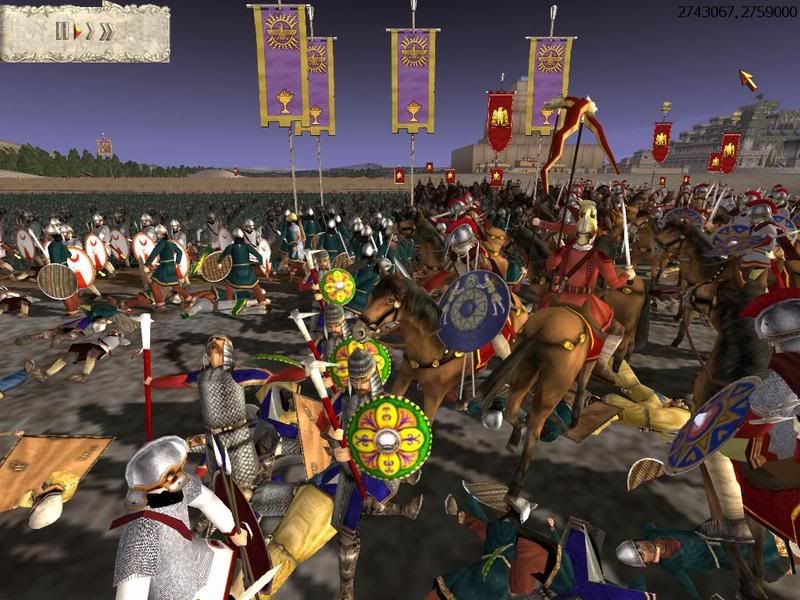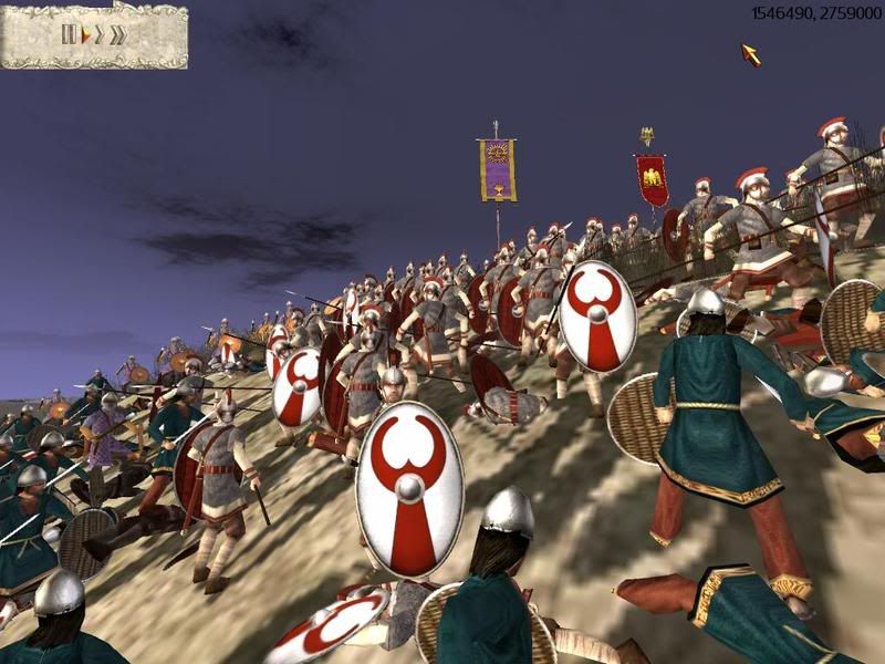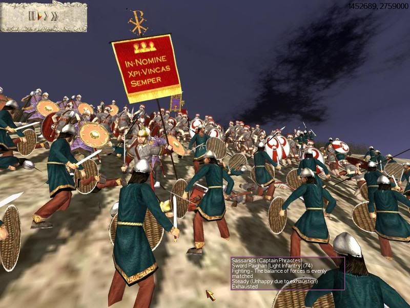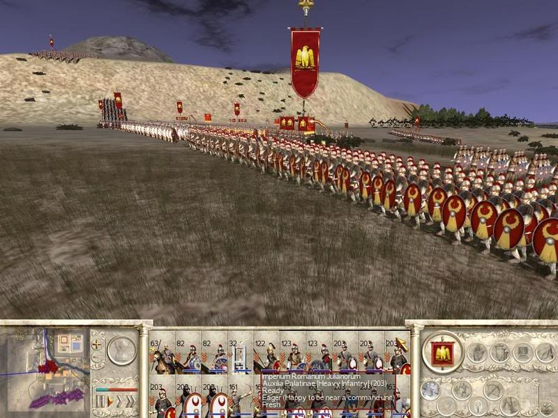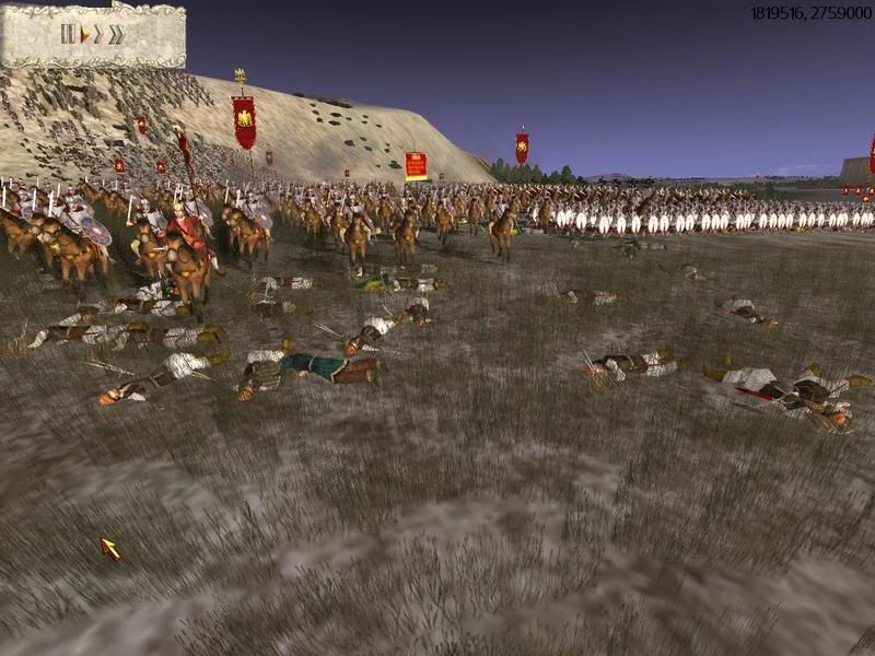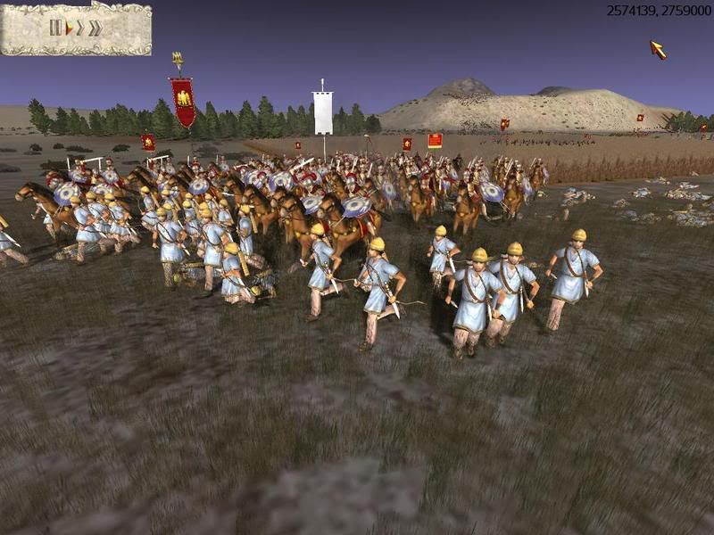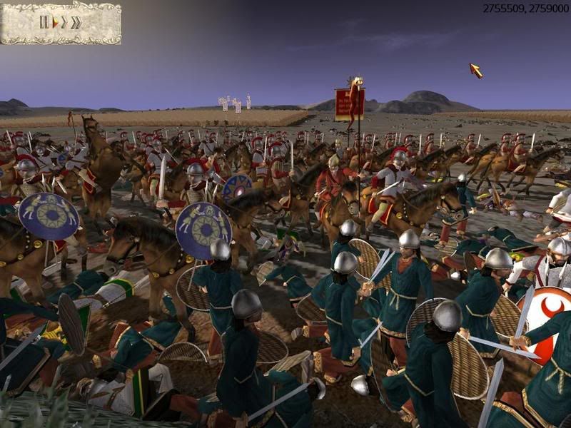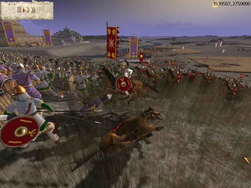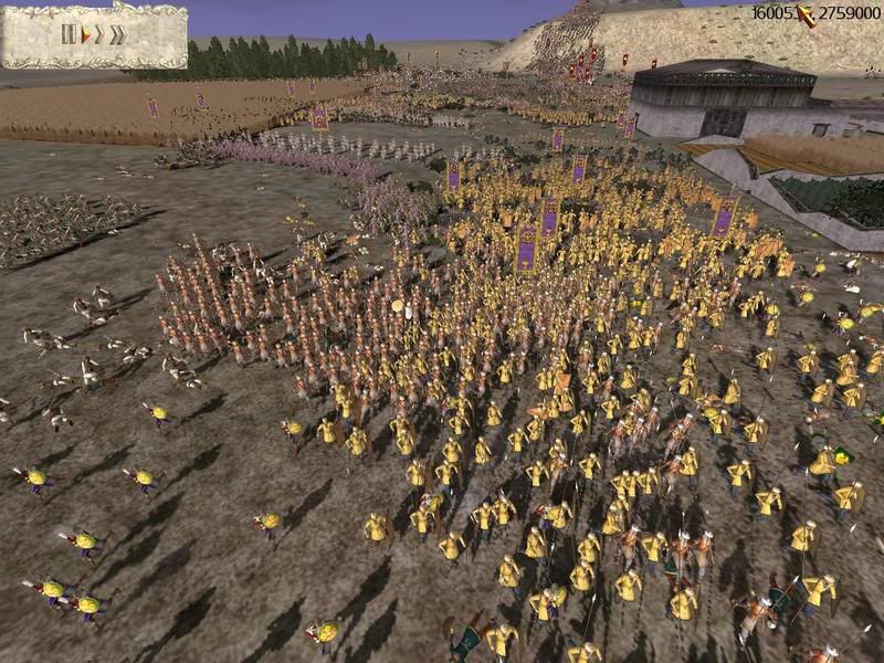 Since we did not get to play the tournament Saturday. I ran another test on my pc. I called it the prelude to Sumere. Approx 3000 for Julian and 11.000 plus for Sassanids. I cheated a little bit. I did not give the Sass any cav. Here are some screenshots.