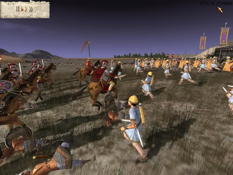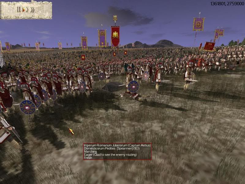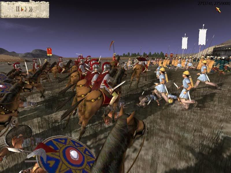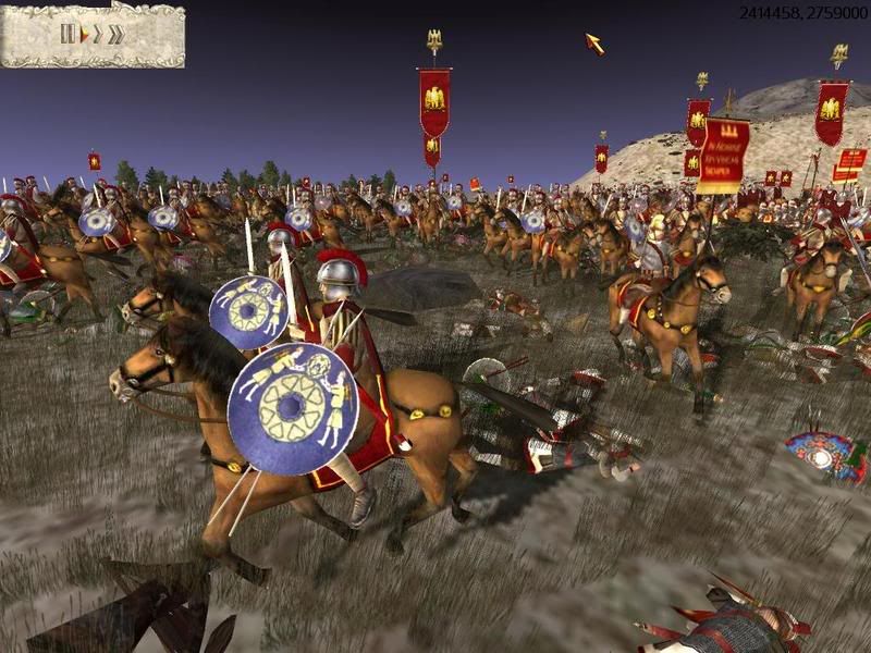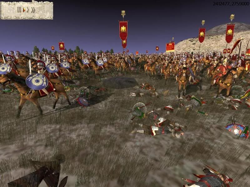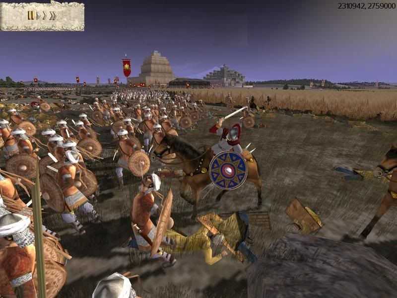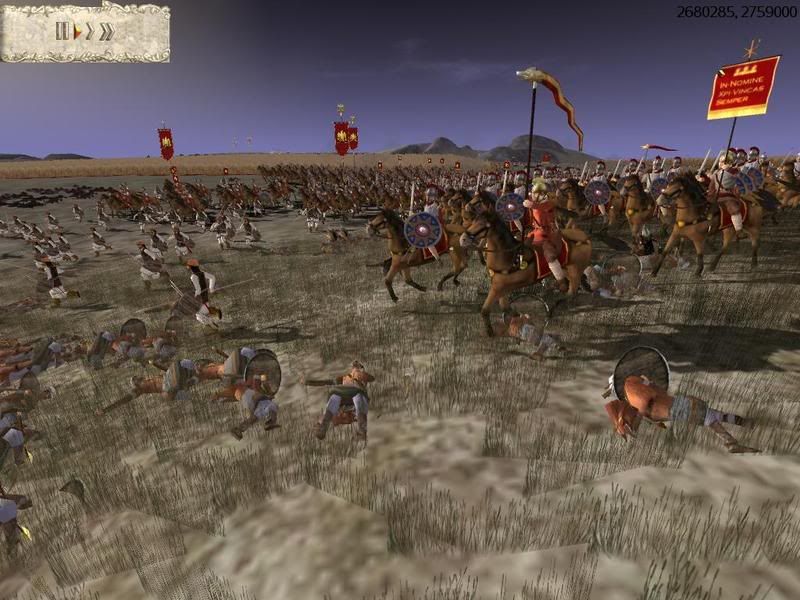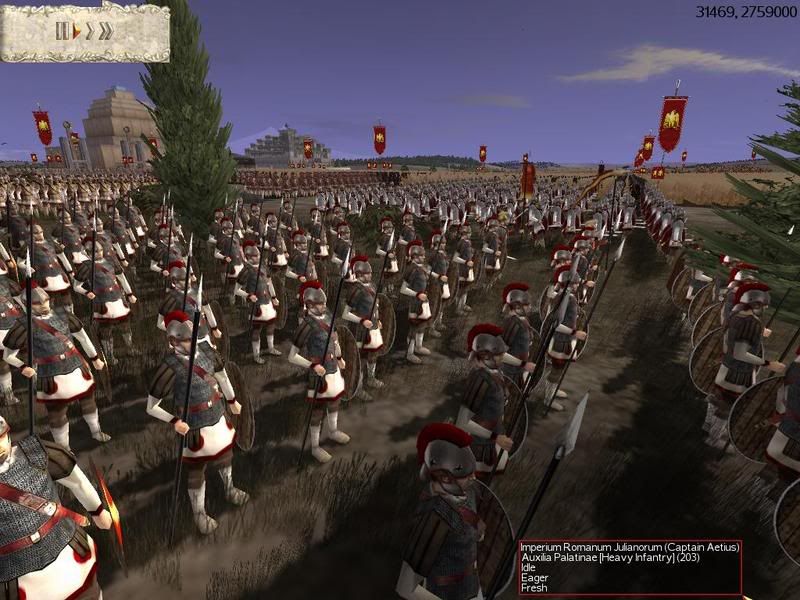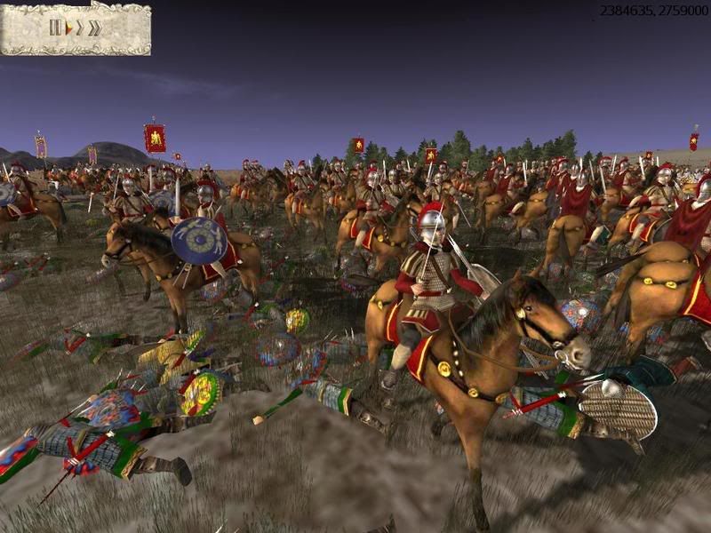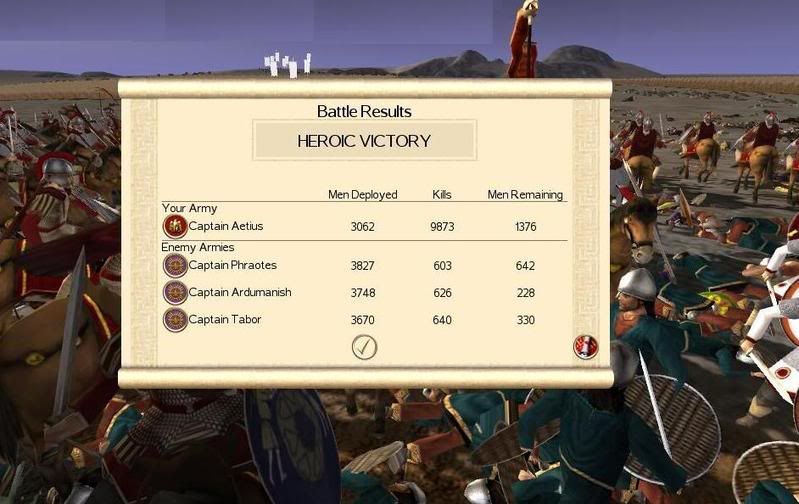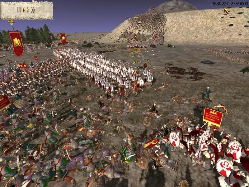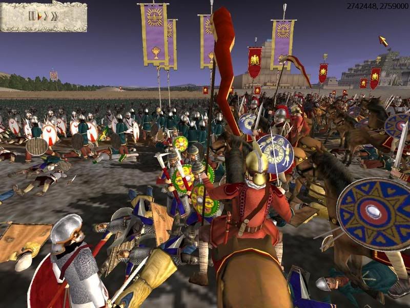 Since we did not get to play the tournament Saturday. I ran another test on my pc. I called it the prelude to Sumere. Approx 3000 for Julian and 11.000 plus for Sassanids. I cheated a little bit. I did not give the Sass any cav. Here are some screenshots.