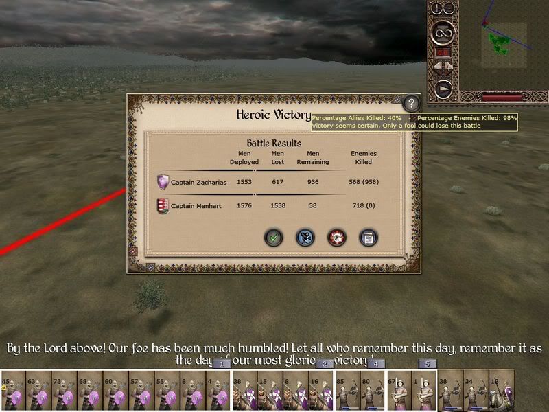 You see, I am playing a Byzantine campaign(SS 5.1, vh/vh, year 1236), i've defeated the Selcuks and the Fatamids. My empire stretches from Durazzo to Baghdad and from Astrakhan to Mecca. I am making about 30.000 profit per turn and am experimenting with all the new available units. I have won most of my battles with a basic army consisting of: