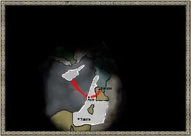 The siege of Banyas continues as normal, and victory here still looks secure, though the provisions of the defenders still last. All eyes are turned to the Master of the Temple in Cyprus, waiting for word of some reaction. I don't think I am the only one holding their baited breath, for all seems quiet, like the calm before the storm. The war with Saladin has lowered in intensity, with Banyas under control and Jerusalem surrounded by Christian lands, but Richard has made no attempt to deny the rumours that he has denounced the Templar Grand Master as a coward, and so they have grown from gossip into belief in the hearts of many.