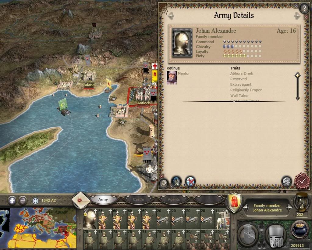 I hadn't any infantry left nearby so I recruited some pilgrims hehe...anyway it's still a true screenshots, he had some traits like wall-taker (I was attacking the city), night figther and I think something like +2 against muslims, anyway it's a shame he died in this very battle by a stupid elephant because I could've taken more shots...
