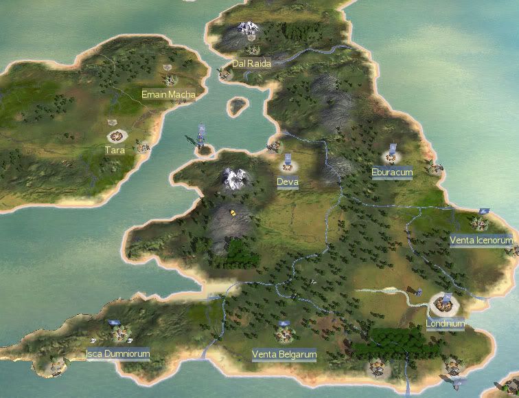 North of Gaul, across the sea lays Brittania. Not much is known about this land, except that it is rich with metals and inhabited by vicious barbarians.