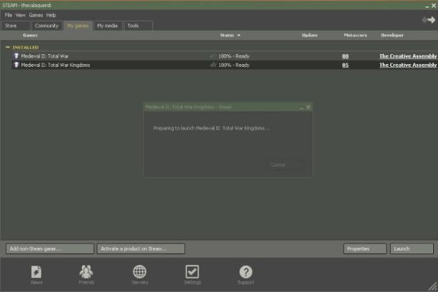 Someone proposed copying the kingdoms.exe launcher into the default installation location. Logically, I thought that location would be C:\Program Files\SEGA\Medieval II Total War. However, for steam users, that default location is actually C:\Program Files\steam\steamapps\common\medieval ii total war