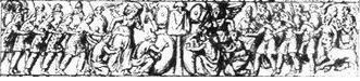 The last as pointed out raises some interesting issues - you can clearly see the eastern-style phyrgian (sp?) caps together with cataphract armour and muscled cuirasses. On the pane above stands a lone Roman war dog apparently guarding the captives!