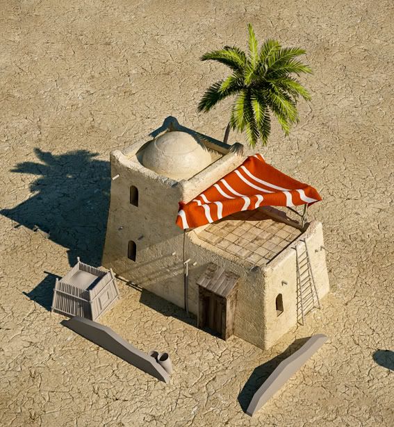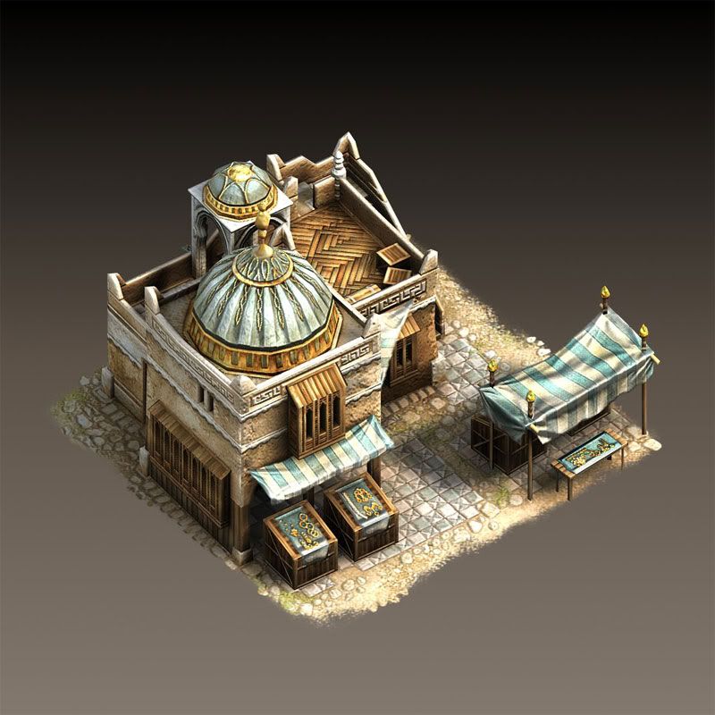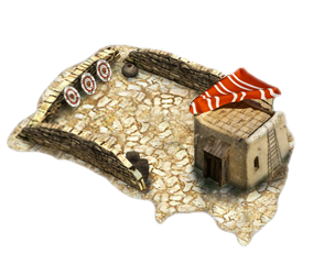 The mines are good as well, but too "greyish" for me. Perhaps using some more 'desert' colours like with the archery ranges? So that they have the same feel.
