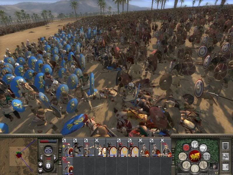 Here are some more battle pics using the new AI. The battle setting was on medium. Rome vs goths. I set up a defensive formation and then watched to see what would happen. I would hate to fight this battle on very hard.