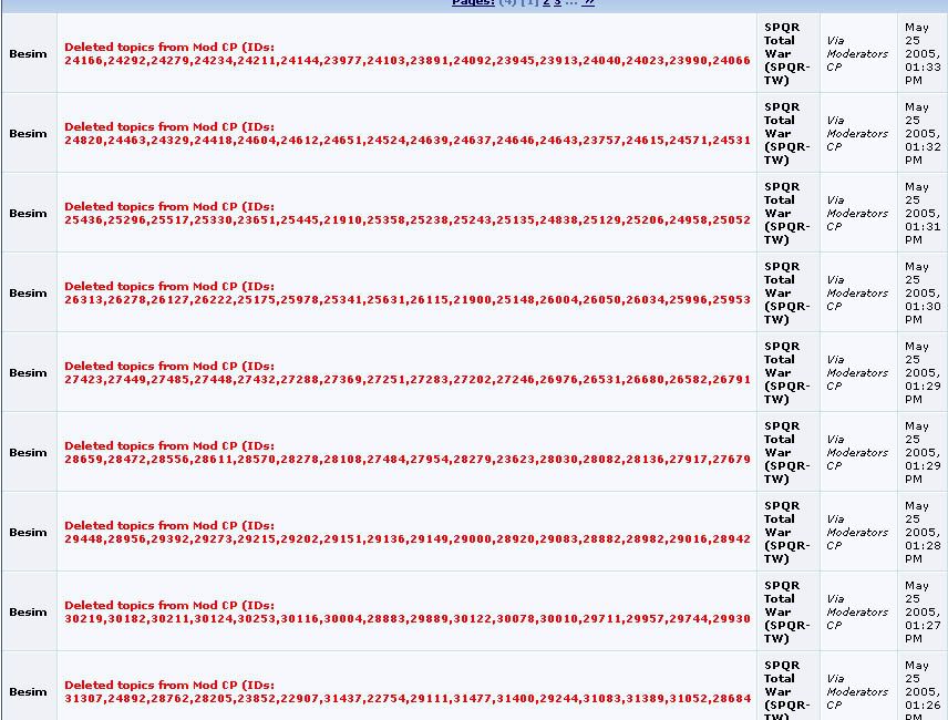 While using Admin CP to promote a few Civis to Patricians, to my surprise, I found a recent series of moderator actions by Paul. Checking his moderator logs I found the following,