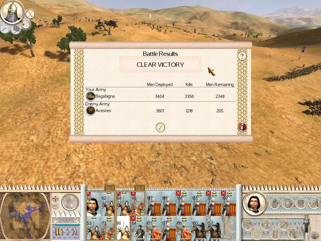 I could do with a volunteer or two running some campaigns as Parthia / Sarmatia (and against them also) and looking specifically at the autoresolve balance. The idea would be to save the campaign just before the battle, try autoresolving, take a screenshot of the outcome, then reload the game and play the battle. We'll need a load of battles and as i said with the player taking both sides in the campaign - and playing on the same difficulty level (Medium).