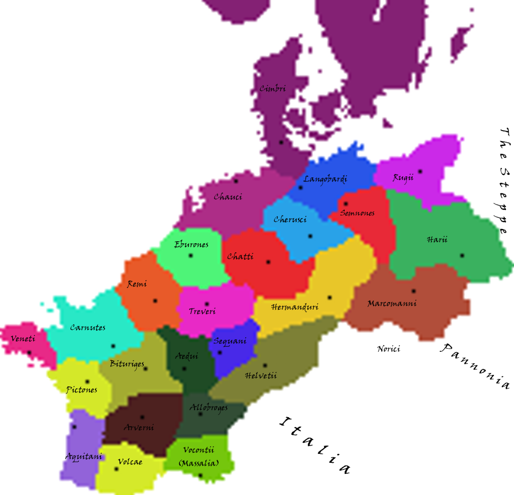 You know, Dacia actually has as many regions (I think) as it had in ExRM. Not that the green splotch is actually two regions with similar colouring. As for the Steppes and the Black Sea, well I ran out of regions there. I had intended for a few more regions, but the Steppes actually came second last on our priority list (above Terra Incognita. i.e. it needs some regions, but not too many). Olbia isn't there anymore.