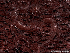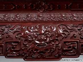 The 4.6 foot-long (140 centimeters) piece is considered rare and prized because of the zitan wood from which it was carved. It also features carved panels, curved legs and an elaborate "Five Dragon" carving on the front and back. The number five represents the "five blessings" of old age, wealth, health, virtue and peaceful death, according to Sotheby's
