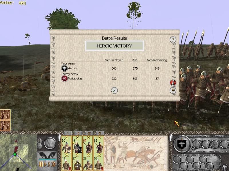 The battle of the first screen was alright, I won't complain. But the following one, with the river... come on! My entire army started routing just because...