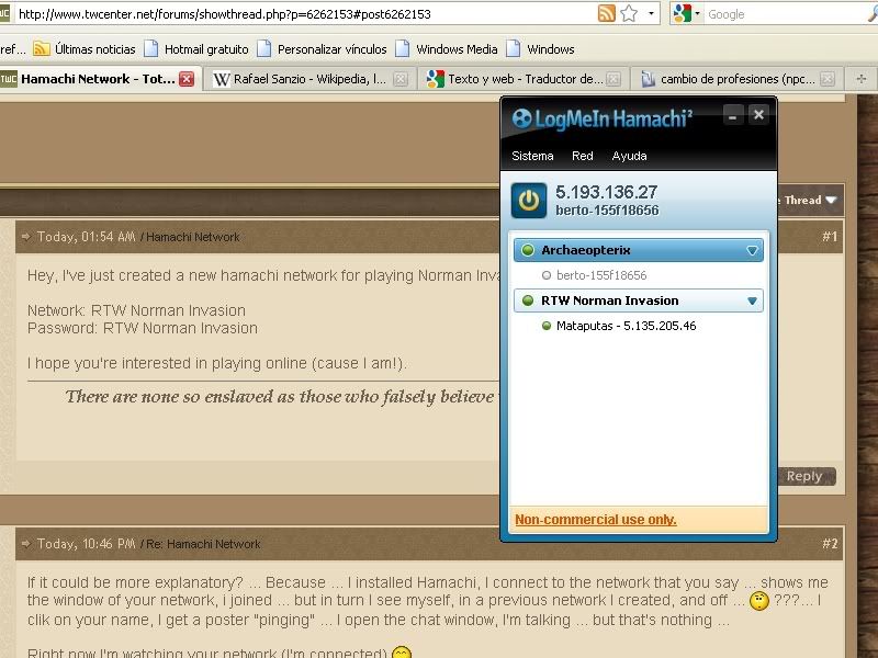 If it could be more explanatory? ... Because ... I installed Hamachi, I connect to the network that you say ... shows me the window of your network, i joined ... but in turn I see myself, in a previous network I created, and off ...???... I clik on your name, I get a poster "pinging" ... I open the chat window, I'm talking ... but that's nothing ...