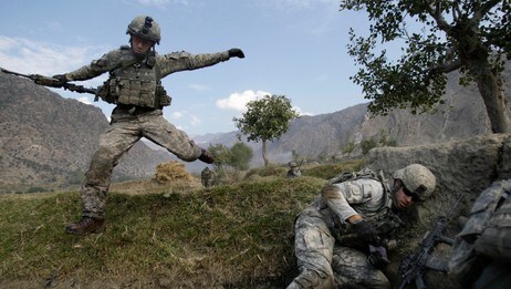 U.S. soldiers seeking shelter in the Afghan Kunar province.
