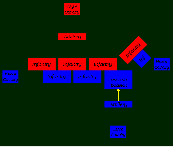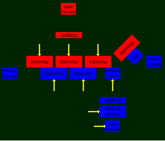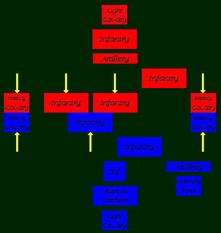 Your "Guard" reserves, called the mass de decision (or deciding force), move behind the screening force along with the light cav.