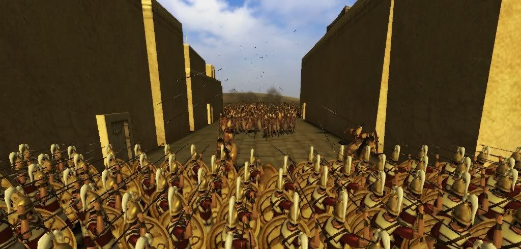 Carthaginian hoplites charge into the enemy Polis Hoplitai, as ballistas fire into the melee