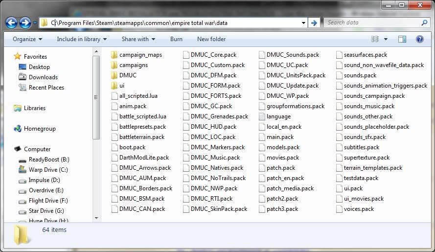 The Empire Total War\data\DMUC sub folder in the picture below should have these items:
