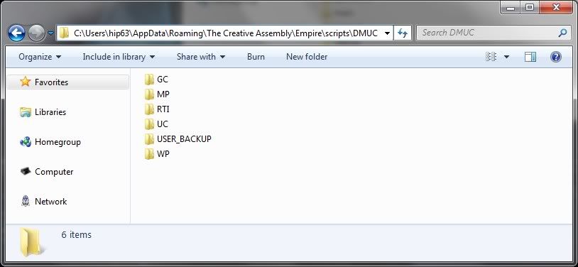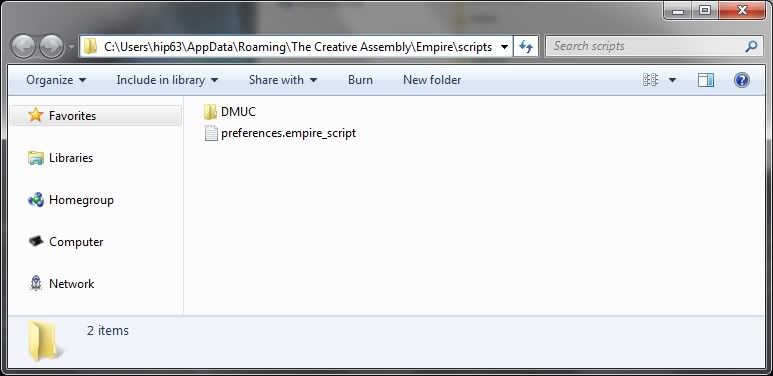 The Empire\scripts\DMUC sub folderin the picture below should have these items: