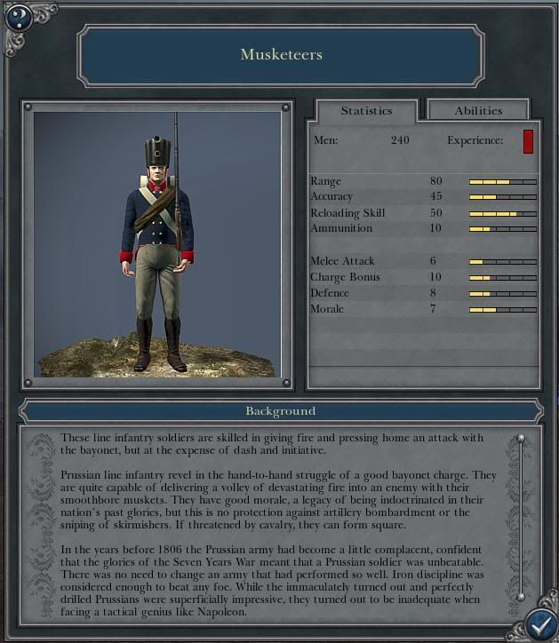 Yes, those are the stats I remember, France has the lowest morale, weak in attack, mediocre accuracy, this is what I remembered and I found that to be hugely disappointing... and what... Prussia has relatively weak infantry as well, that doesn't make much sense to me.