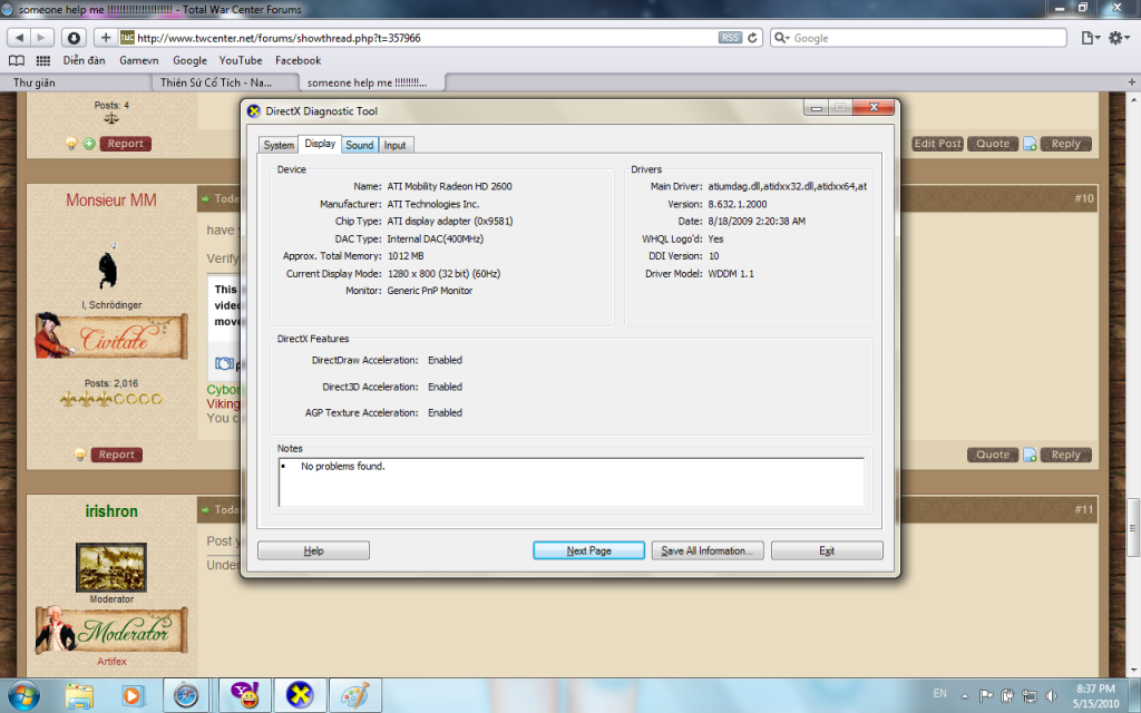 See the buttons on the bttom of your dxdiag? Run it, again, and click the "Save all information" button.