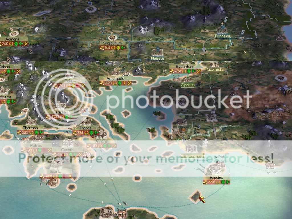 Anyway, as you can see, Rome is down to Cannae, Capua and Roma itself, so it won't be long now. I have a force of around 4,000 total going up against them, and according to my spies, their remaining numbers are about half that. So I'm trying to decide who to go after next so that I'm not fighting a war on multiple fronts (anymore than I have to anyway). Currently Thrace to my north is neutral to me, I'm allied with the Ptolemics, and the Gauls hate my guts for taking a few of their cities to invade italy from the north. Suggestions?