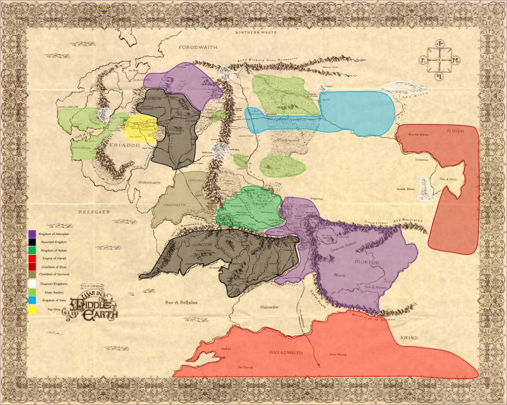 - I also didn't included Harad's prescence on the western tip of Gondor, since it is usually abandoned quickly, also Harondor is completely independant rather then being occupied partially by Harad.