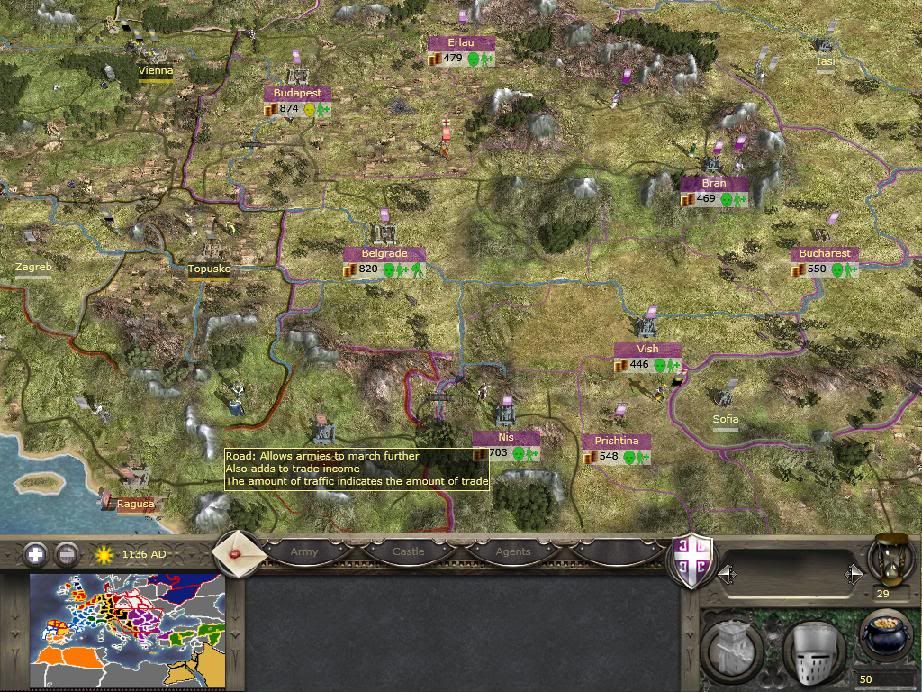 I.E. I used a 900s Iberia map, a 1050 Hungary/Balkan map, a 1100 British Isles map, an 1100 Holy Roman Empire/Germanic States map, and a 1065 Italian map for the cities. I didn't use an overall Europe map because then it would be difficult to find reference points for each city to the next. I believe each city is positioned accurately.. (besides Copenhagen. I don't know if Copenhagen existed in this time period, I just REALLY wanted to add it to the game.)
