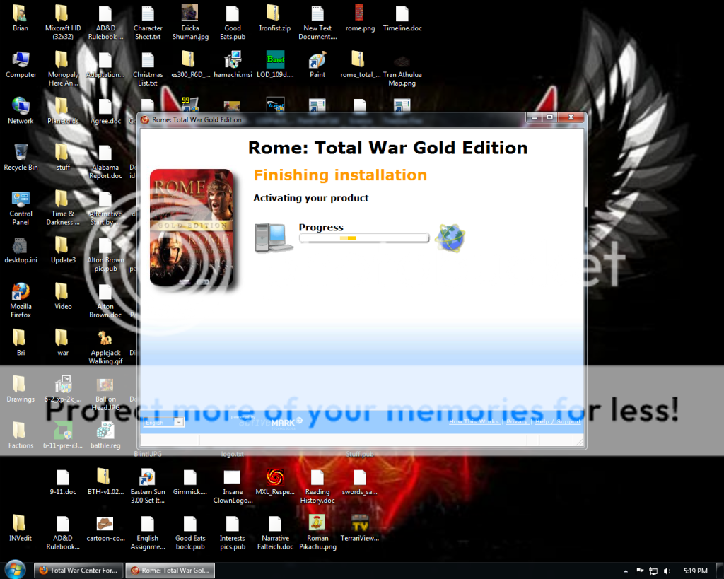 While reinstalling my online (not Steam) copy of Rome Total War, everything went fine and it finished installing.