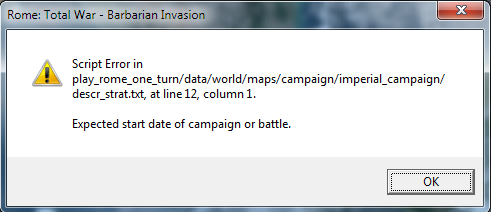 When i launch the game, it immediatly crash to desktop with this error message : "Script error in data/descr_event_images.txt, at line 2984, column 1. Unkown event string Settlement_Razed .