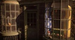 Violeta enters the shop and purchases the black Eurasian Eagle Owl she looked at the year before and then tries to find a Crystal ball while the shopkeeper gets the owl and some owl supplies. She also purchases the crystal ball.