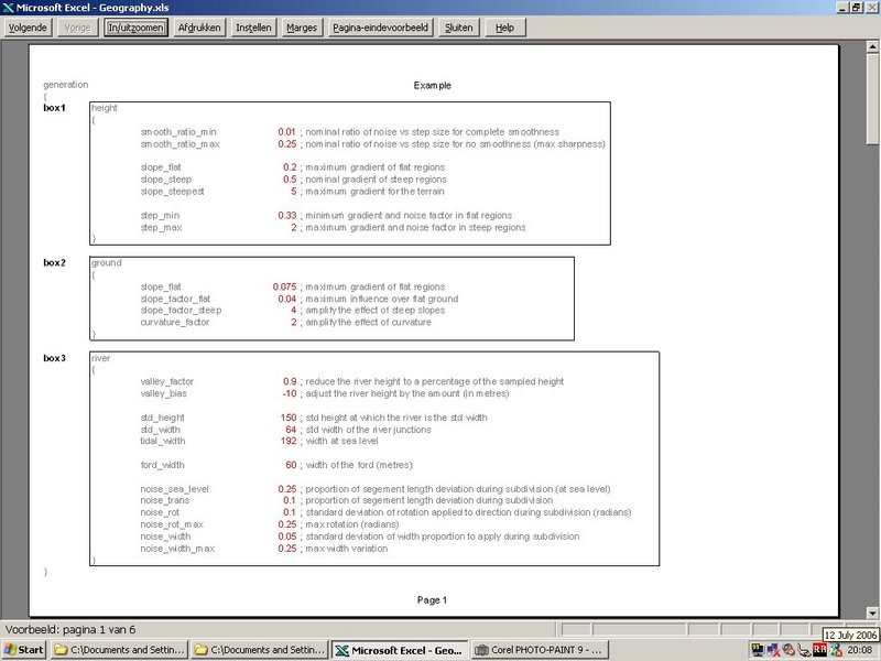 In both global and local sections a distinction is made between parameters governing small scale relief (figure 5 box 1 and figure 7 box 8 ) and those governing ground type variability (figure 5 box 2 and figure 7 boxes 7 and 9). In all, a top to bottom, left to right approach isn't very useful, both for this guide and for modification itself. Instead we opted for a reconstruction of the "stripped down" landscape shown in figure 4. The modification of ground types are slightly simpler to explain and is treated before the modification of small scale relief.