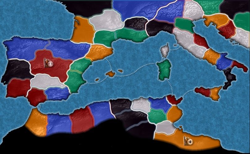 - random assignment of territories from the start, evenly distributed amongst factions. you choose where to invest your armies.