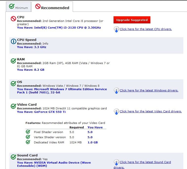 According to "can I run it" I should be having a fantastic old time, as it maxes out the performance bar, and meets/exceeds all recommended settings...and yet it runs terribly. I've lowered unit sizes to medium, unticked all the flashy options that make the game look prettier and set all boxes to the lowest setting, whether it be "off," "low" or what have you, only keeping unit detail and size at medium (I even tested unit detail at very high, and it still looked appalling) and yet the game is still jerky, almost like it's constantly lagging for a second, every second, with any effects around cities/units making it even worse. Here's the "can I run it" review: