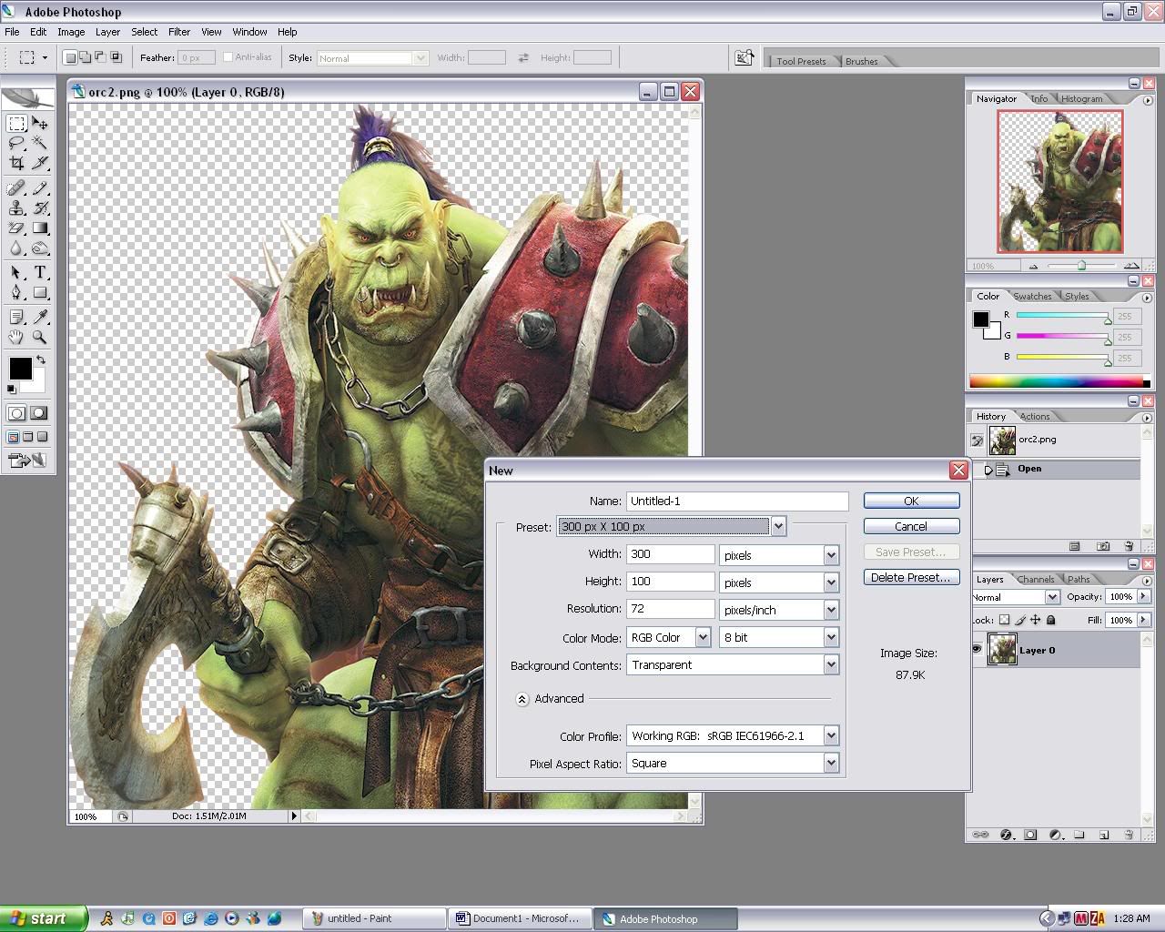 2. open it up in photoshop and start a new document with all of these settings..