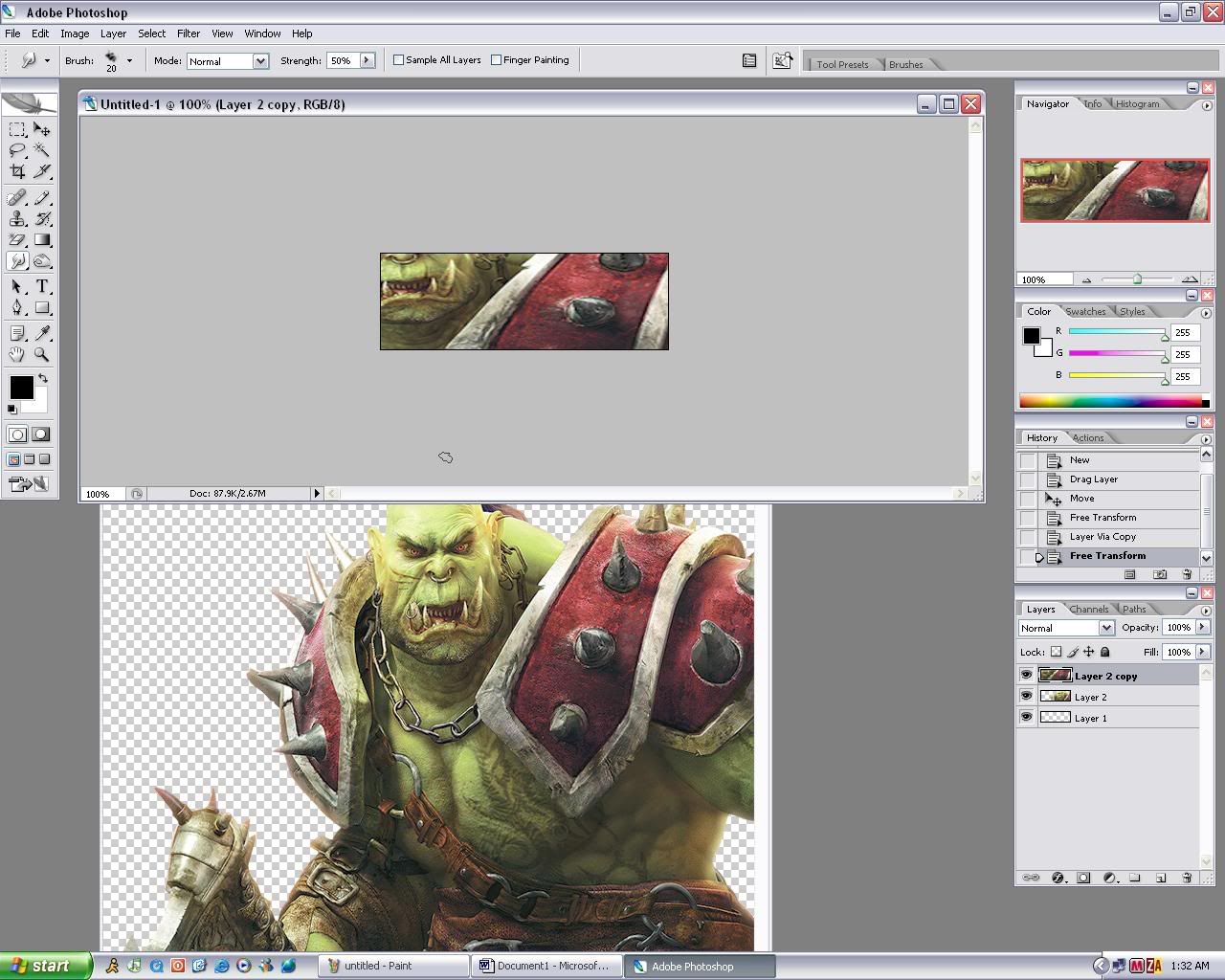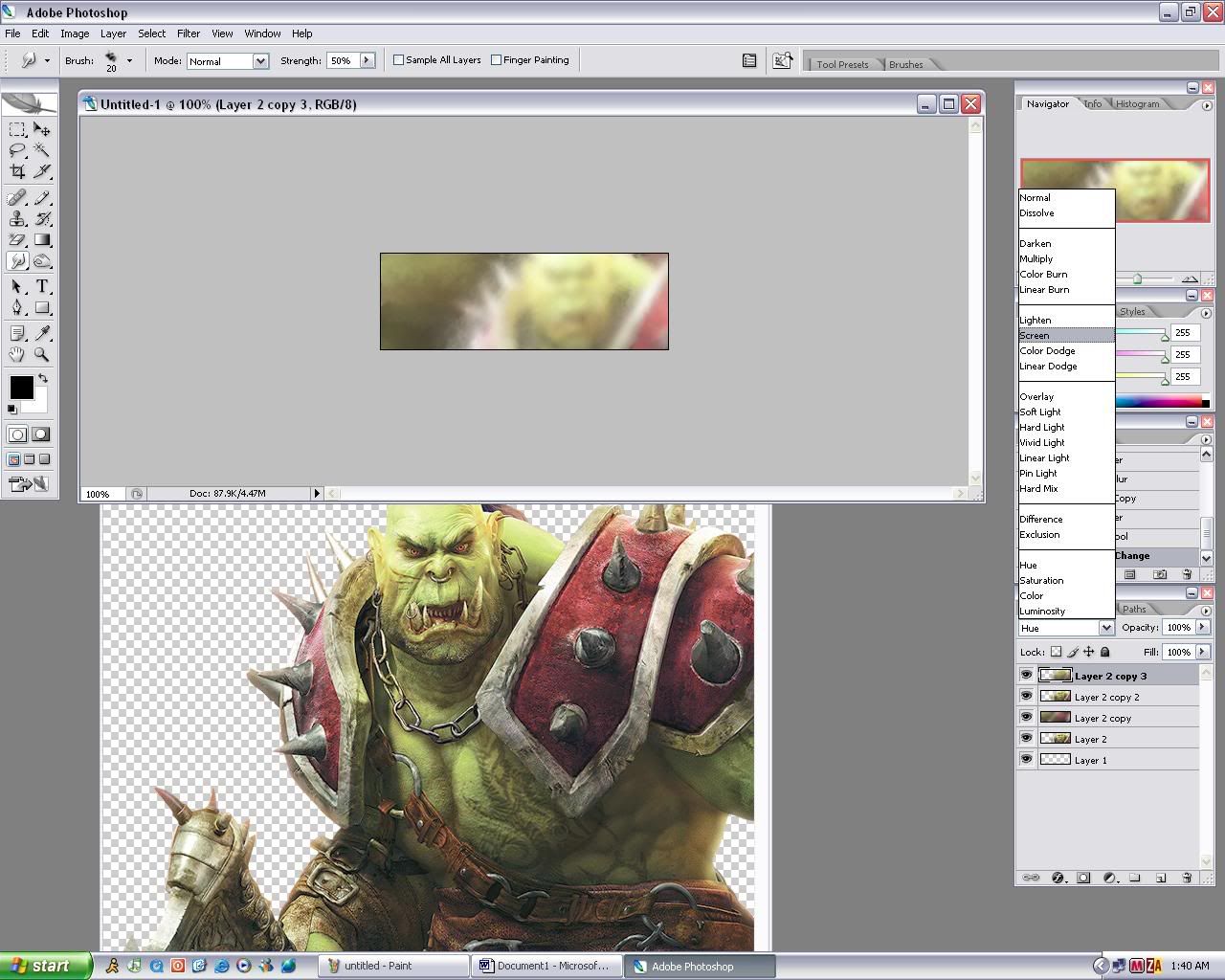 9. Duplicate the original render (the image in the beginning) and drag it up to the front where you can see it…