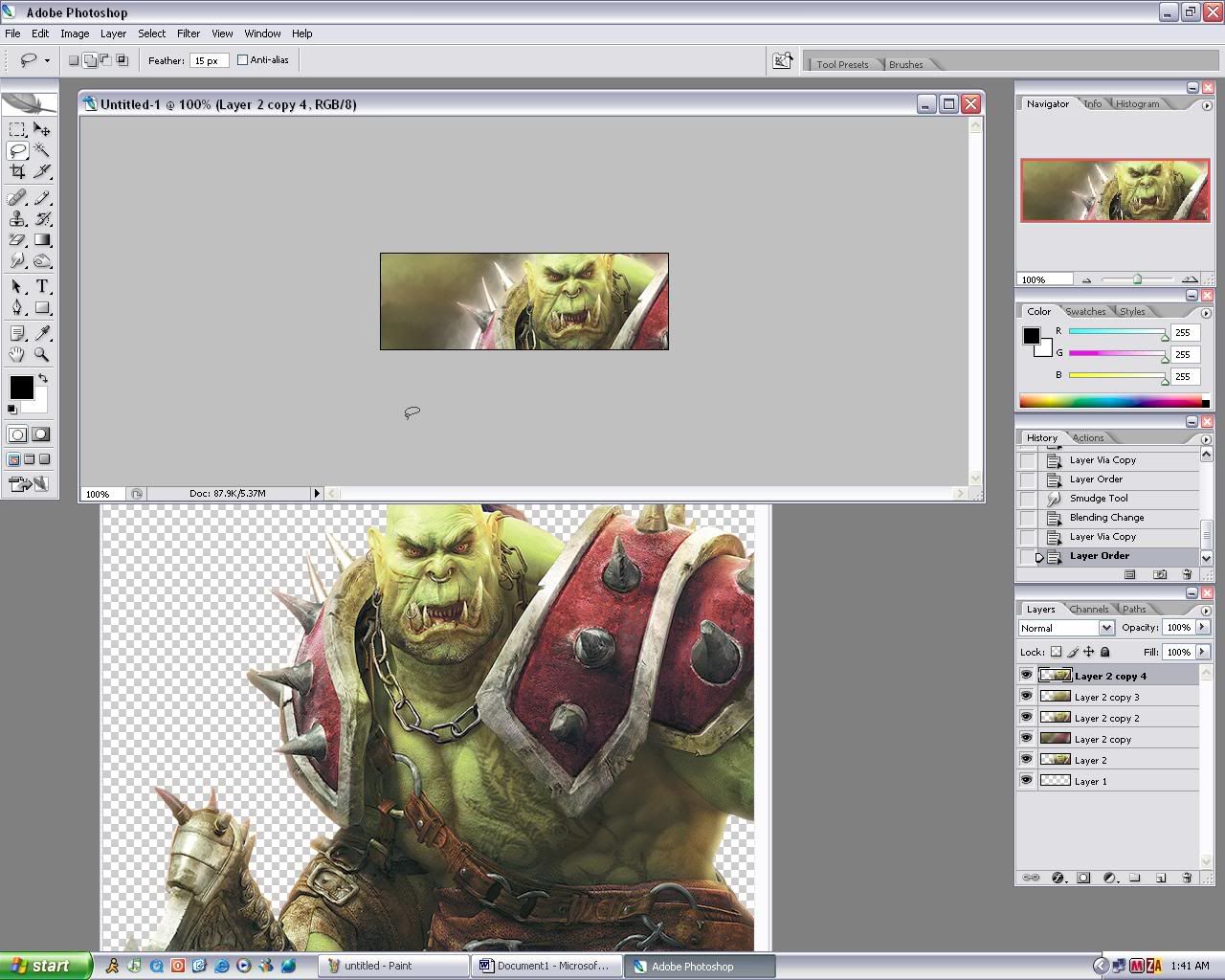 13. Duplicate the render once more and select your lasso tool and set the feather to 15 pixels..