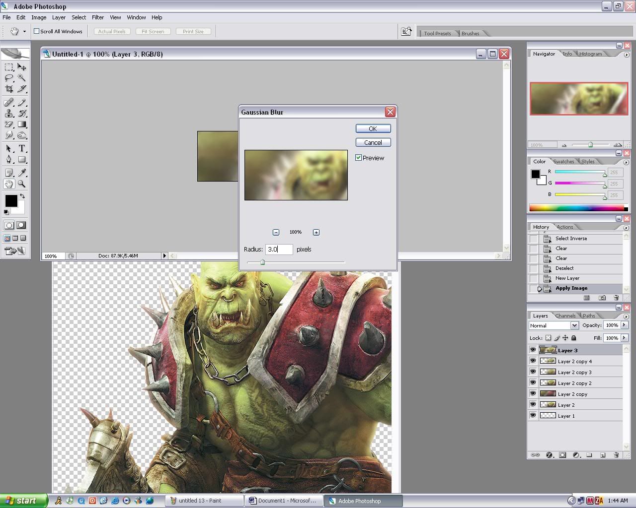 16. now go back to Gaussian blur and set it to 3.0 this time….