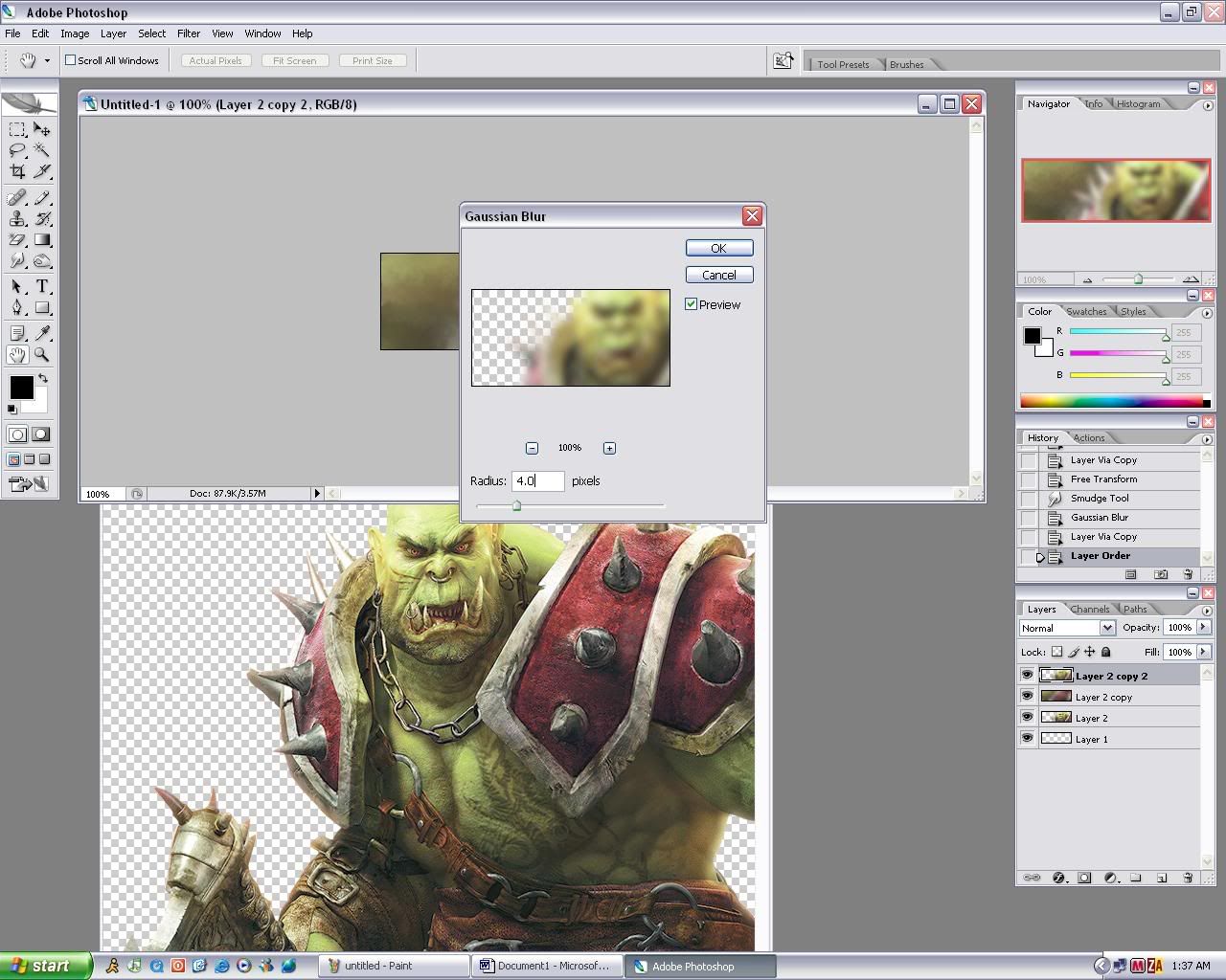 10. Select Gaussian Blur and set it to 4.0