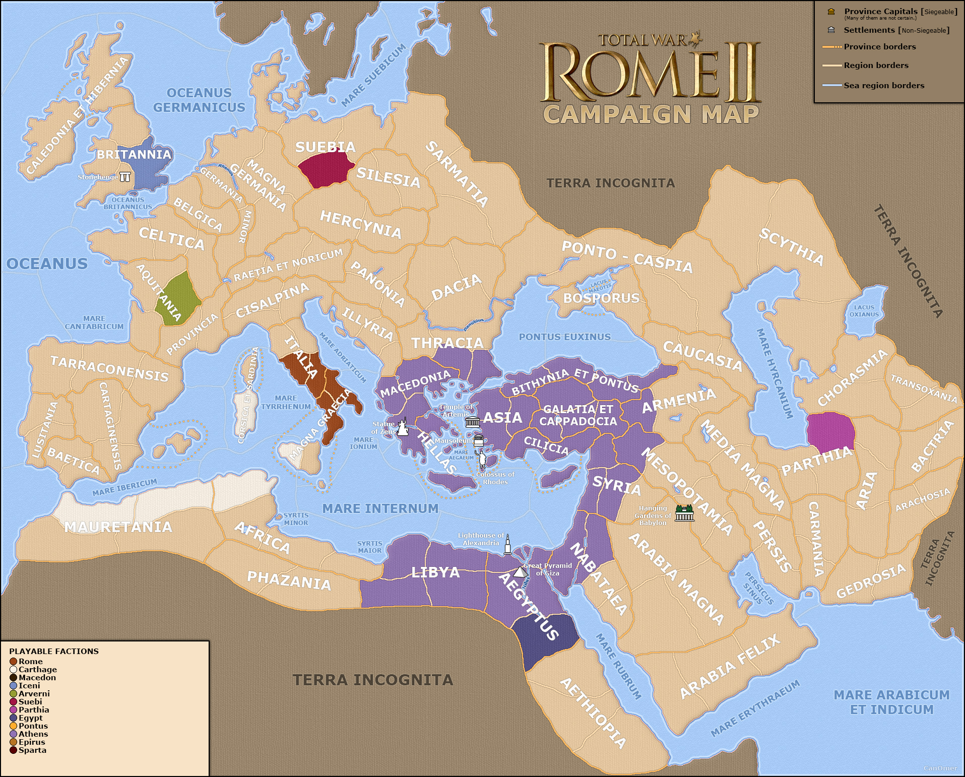 I don't have photoshop, however, I will play as Sparta first. I will likely try to ally with Rome as I take on the rest of Greece before heading towards Asia.