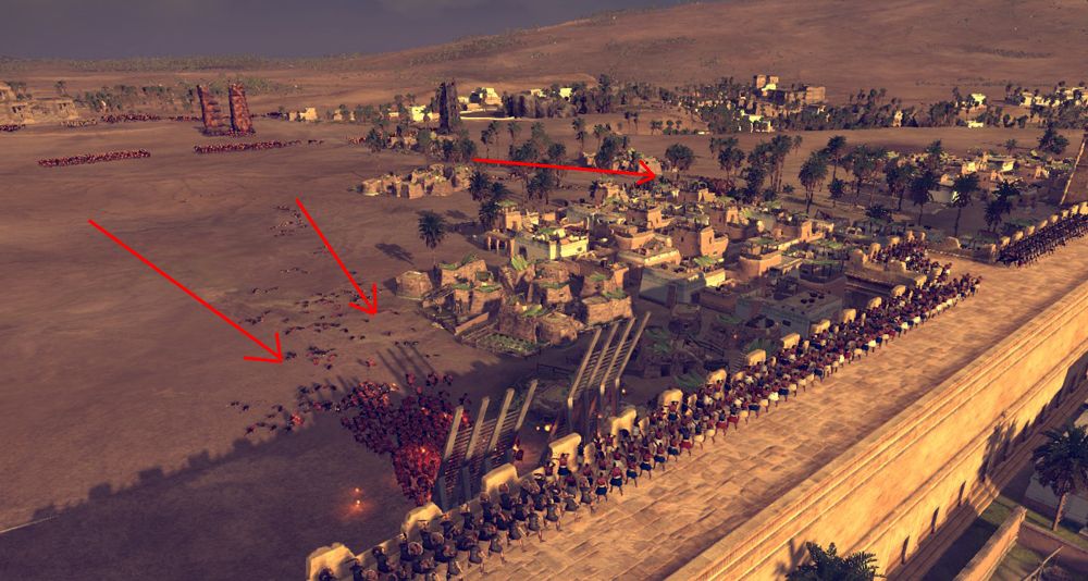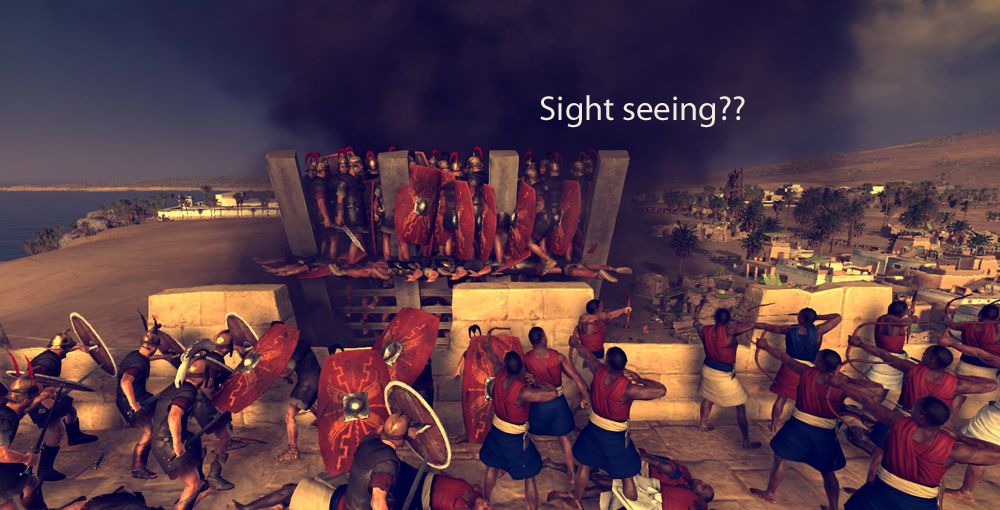 At least once during this time they threw their pila at the walls, somehow able to see the units behind and think they could attack. You see the same nonsensical crap happening with javelin and bow units -- who can actually throw/fire high enough to hit their targets regardless of the fact that they can't possibly see them.