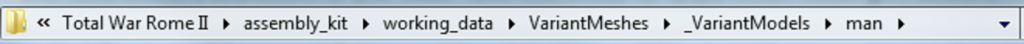 If you create a new VariantMeshDefinition file, paste that in and save it to the "VariantMeshes/_VariantModels/man/armour" folder that PFM accesses then you just need to reference the new file. The easiest way to create that file structure is to open up the "models_rome2" .pack file, expand "variantmeshes", "_variantmodels", "man" and finally "armour", then right click on any of the files you see and select "Extract -> Extract selected". PFM will automatically create the file structure you need for the above definition file.